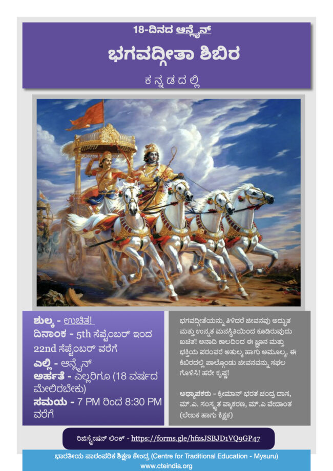 18 days Bhagavad-gita course in Kannada – A unique opportunity!
