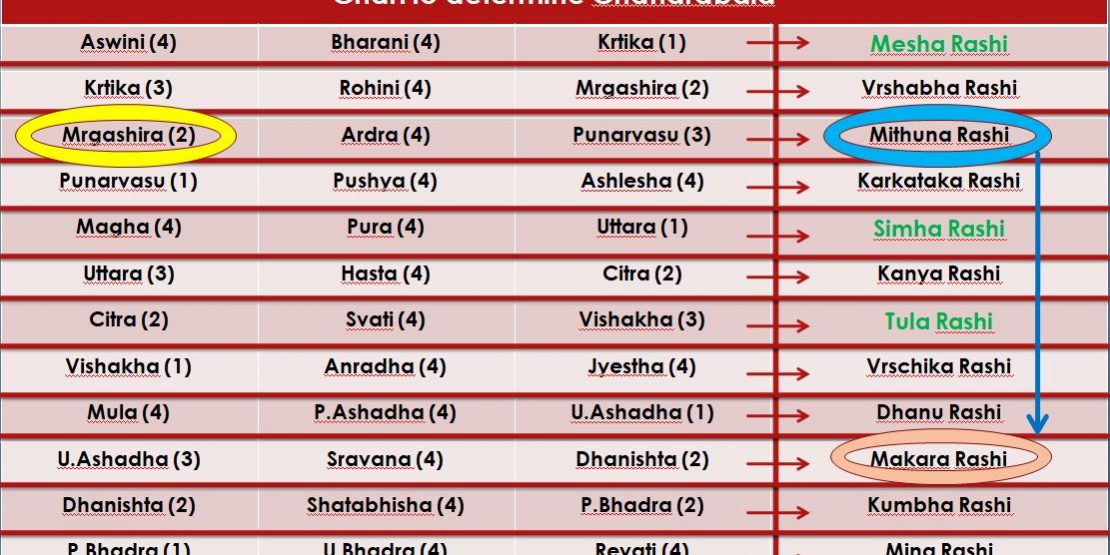 From the birth Rashi, count downwards upto the position of the rashi in which moon is situated today (or the day you are checking for). If it is 8th position, this is known as “Astamachandra” and indicates “Death”. Hence if it is astama Chandra for you, that day is not auspicious for Garbhadhana samskara.